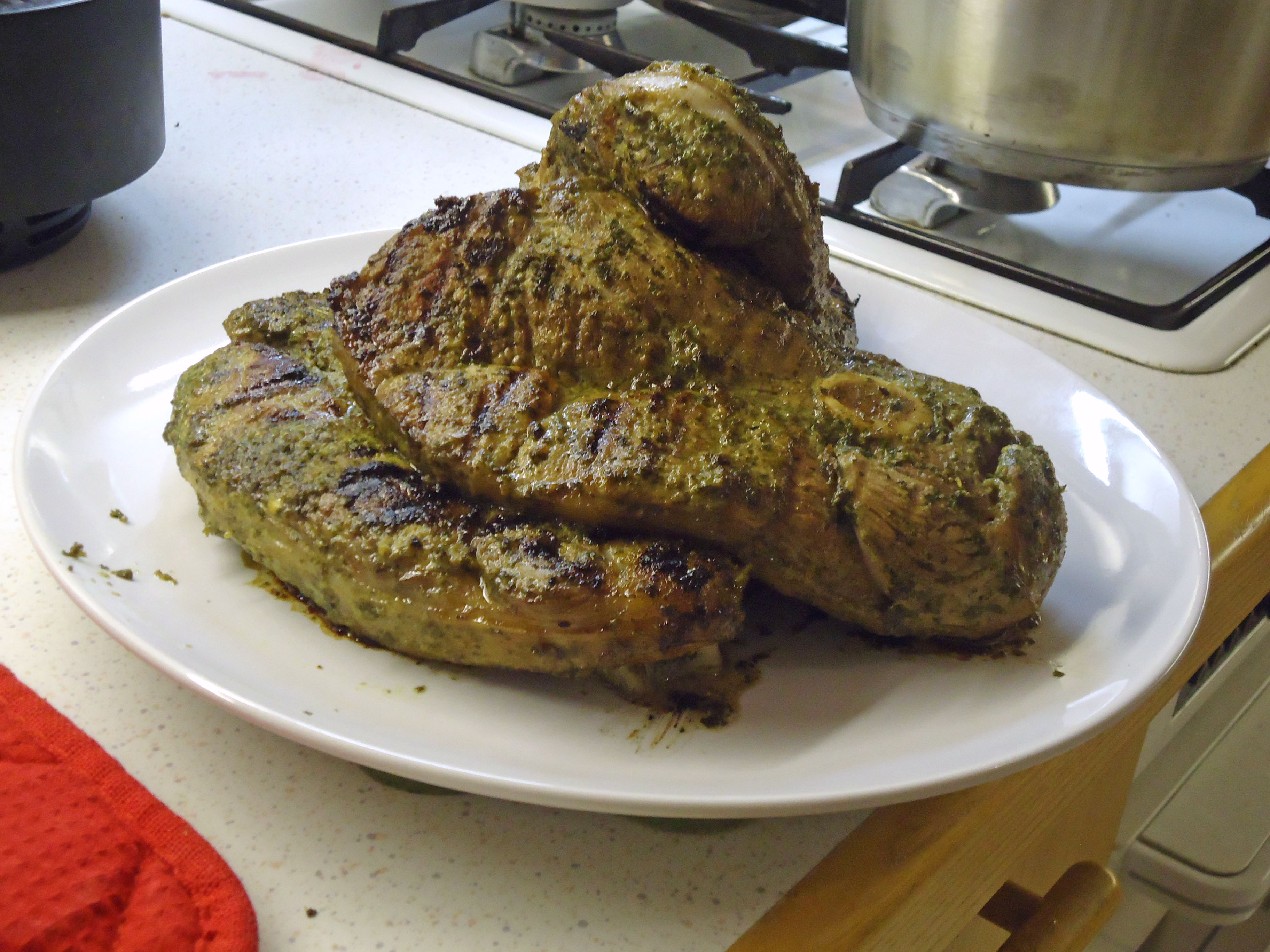 Lammschlögel mit Minze-Koriander-Honig-Sauce (Rezept)