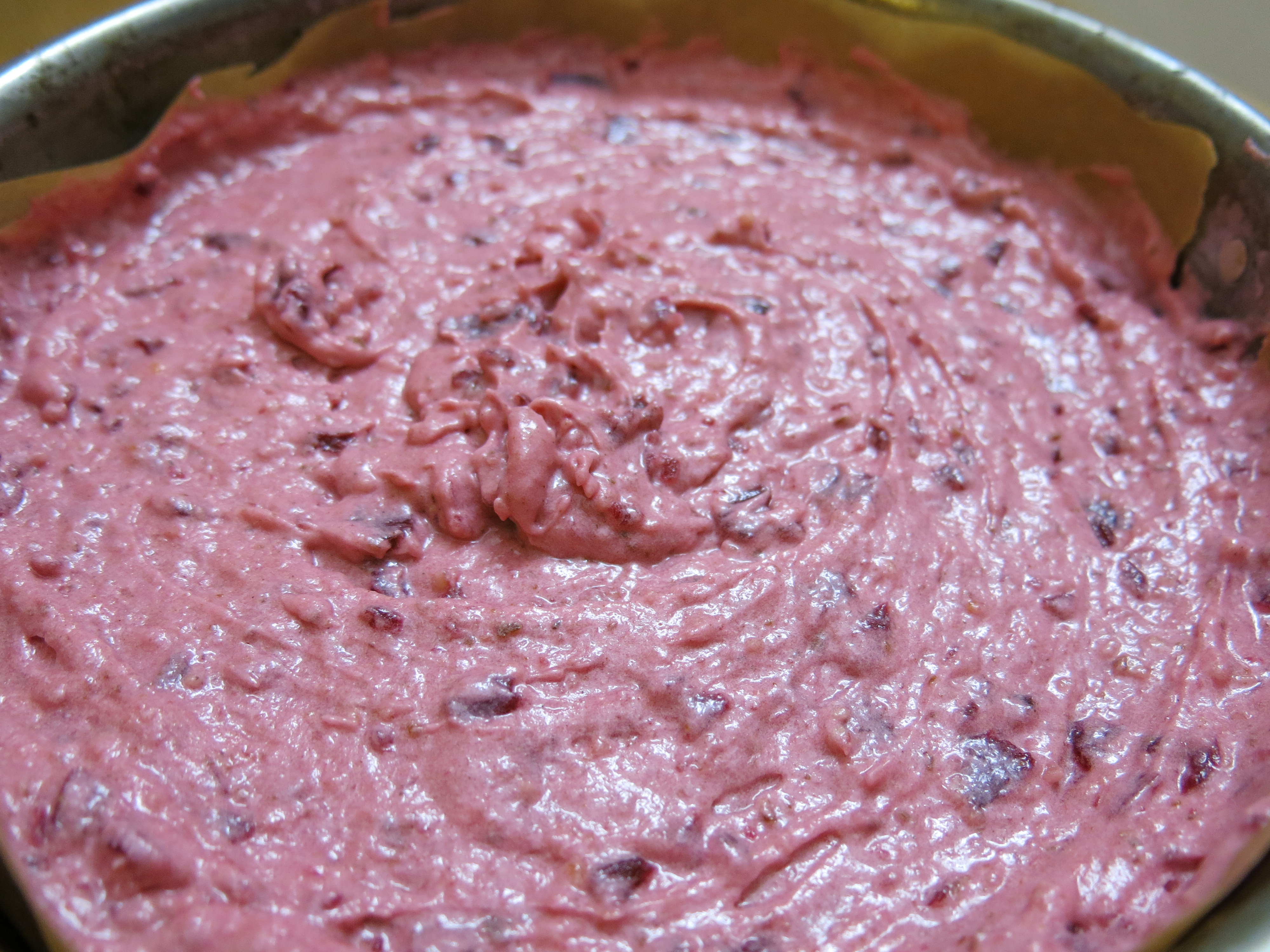 verrühren, in eine runde Springform (22cm) streichen und ca. 20min bei 170 Grad (Umluft) backen. Der Teig wird etwa 1cm hoch.