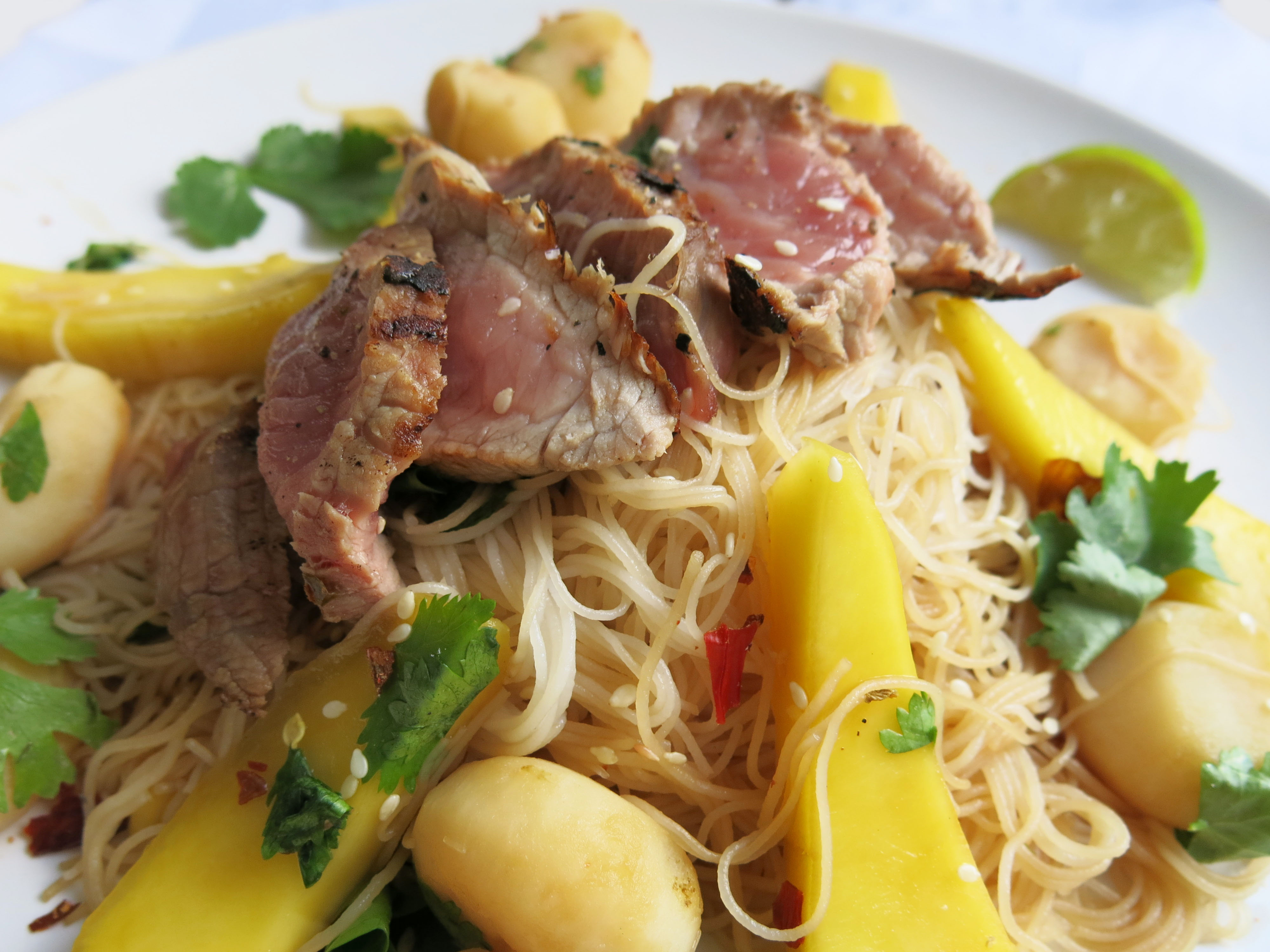 Filetspitzen auf Mango-Wasserkastanien-Salat