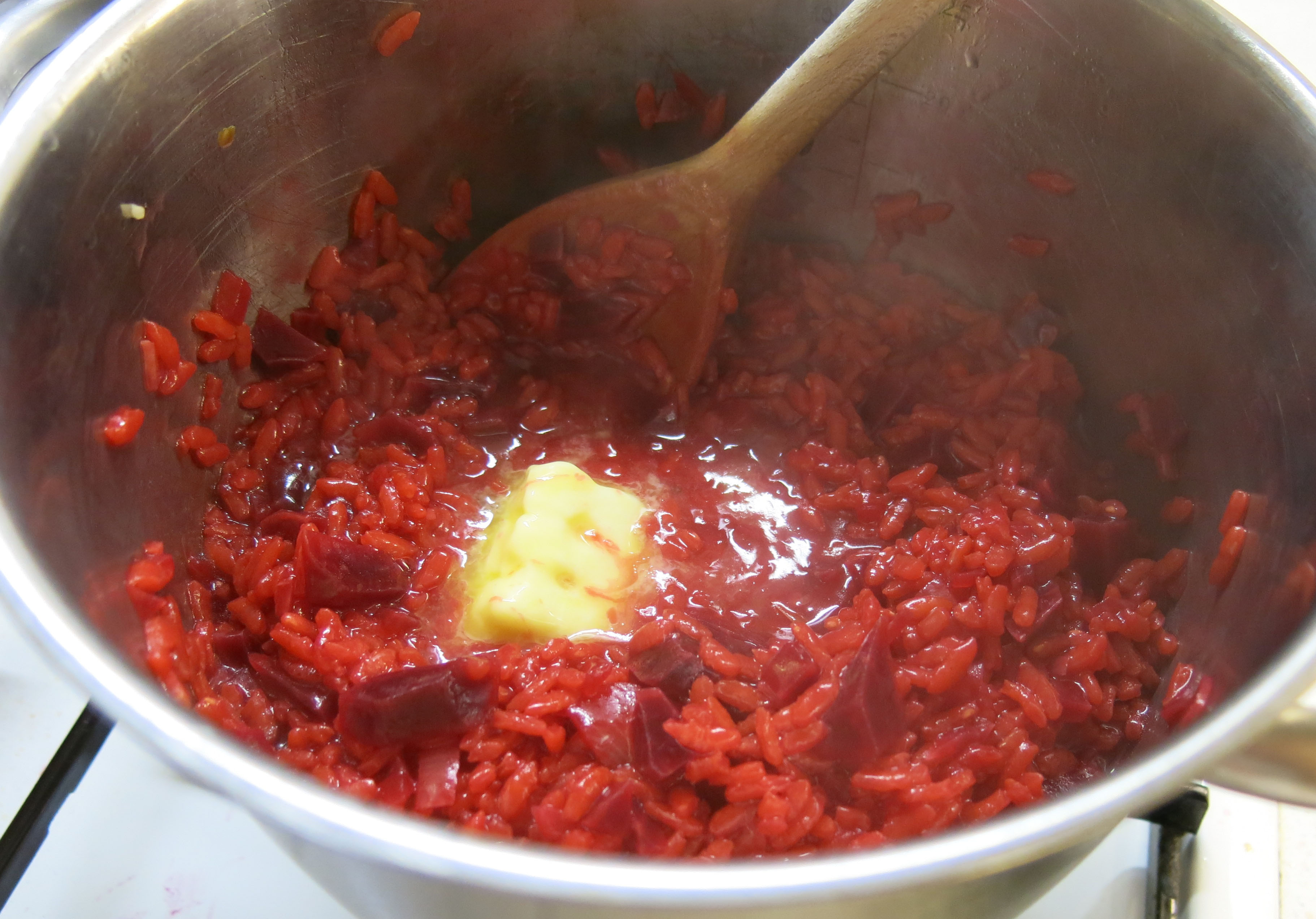 Hübsch ist es alle mal das Rote Rüben-Risotto (Rote Beete) – ich hatte es auch bereits bei meinem Valentinstagsmenü auf der Speisekarte.