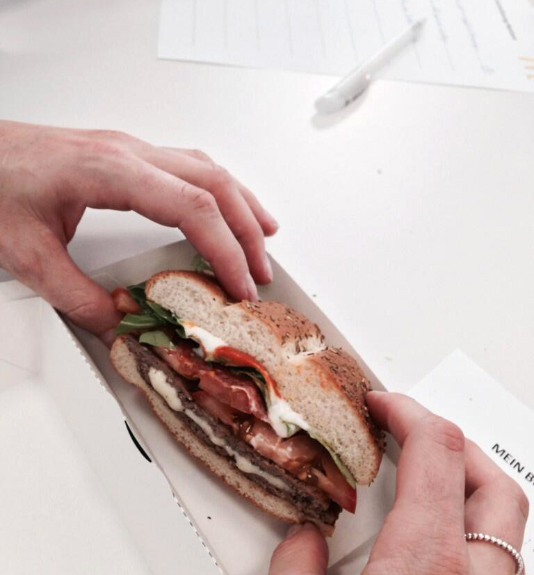 Verkostet wird jeweils ein halber Burger (sonst schafft man das wohl nicht)