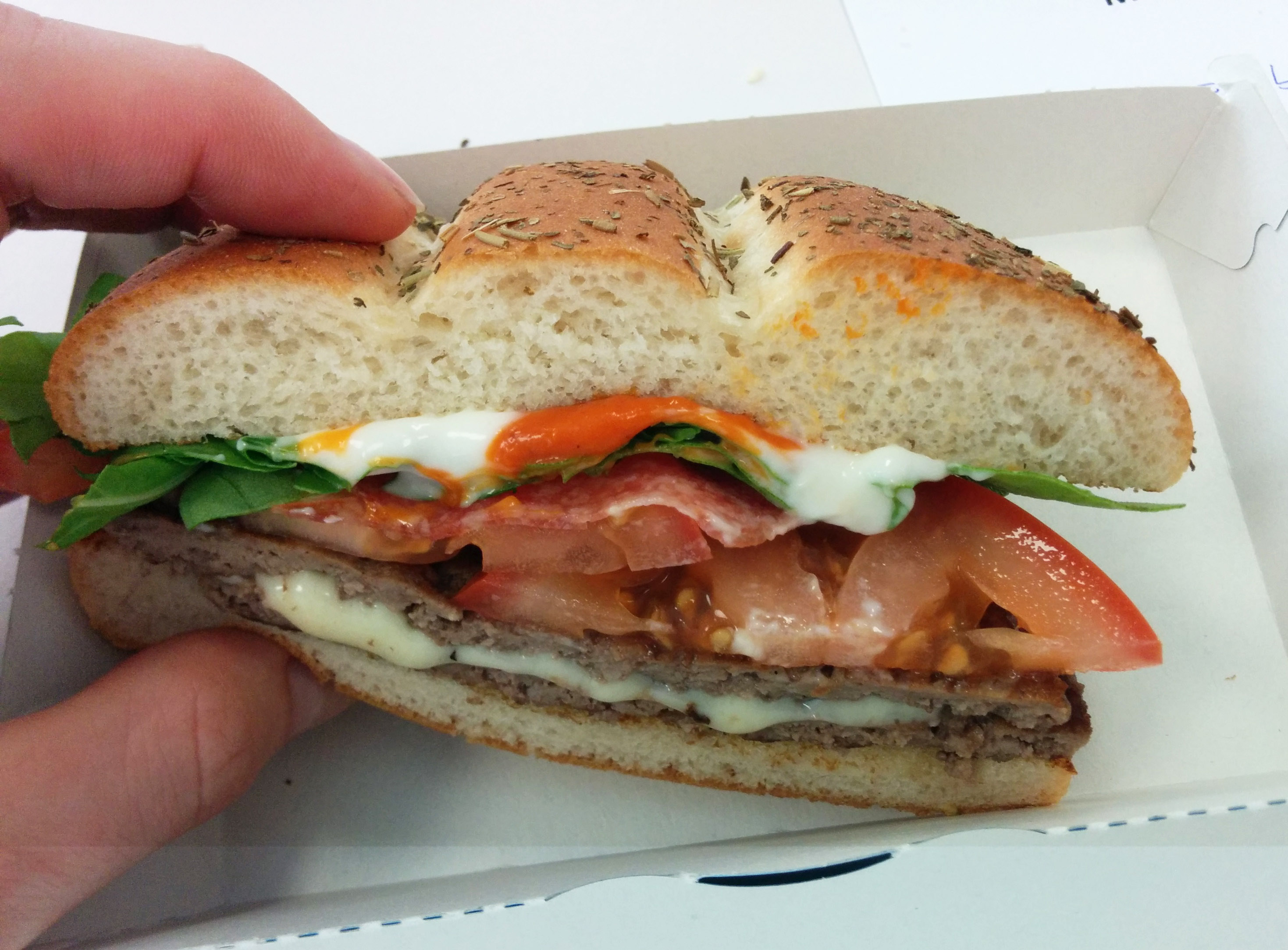 Burger 4: McMafiosi (Salami, Ruccola…) 2x abgebissen