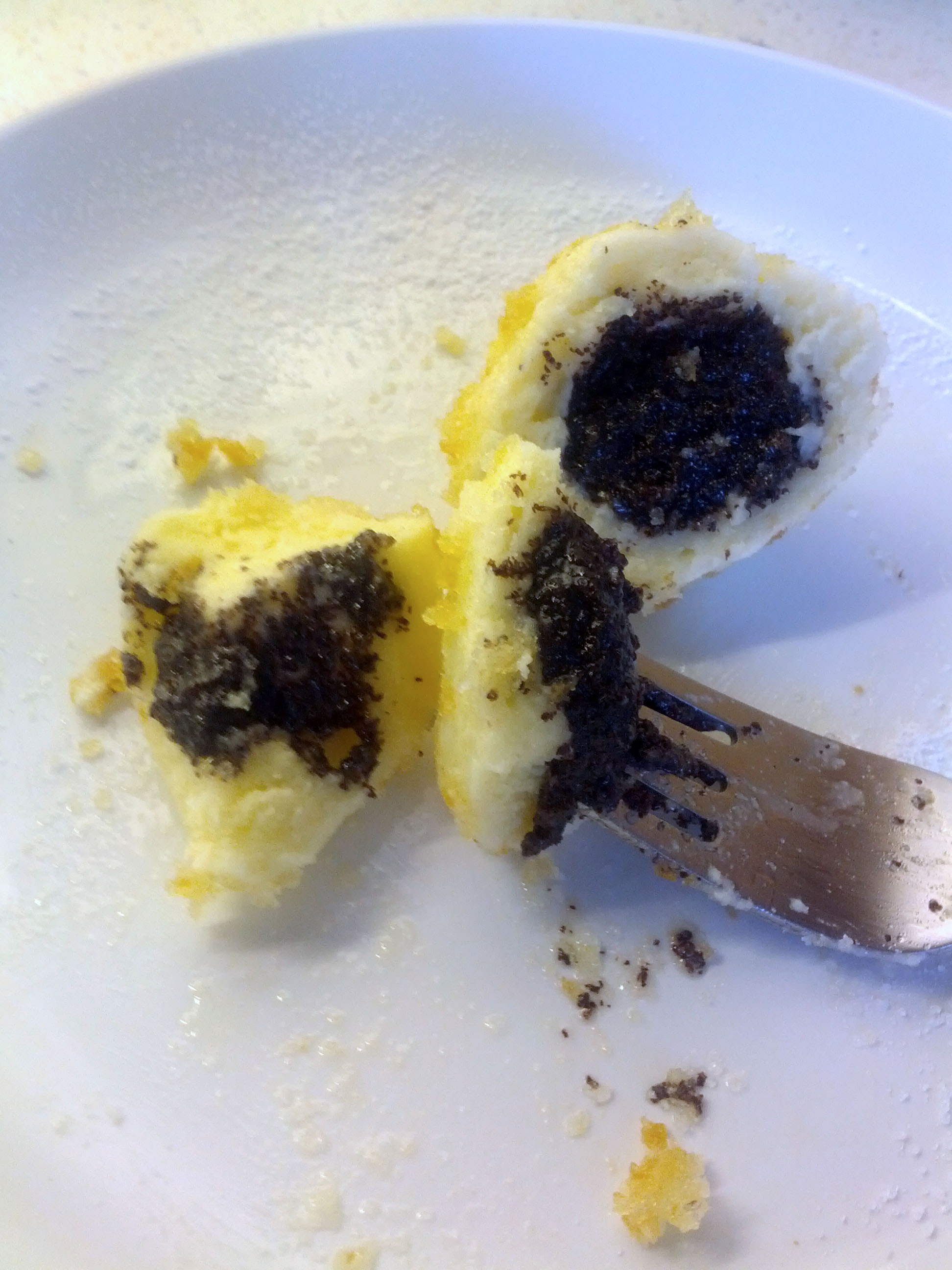 In einer Muffin-Form verteilen und 15-20 min bei 180 Grad (Umluft) backen.